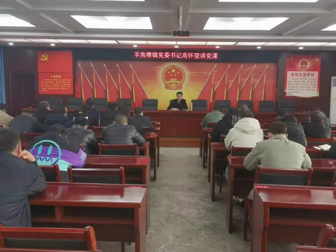 为提高党员干部政治站位,强化责任担当,1月11日,羊角塘镇党委主要负责人以“讲政治、讲学习、讲规矩”为题讲授专题党课。镇机关党支部党员干部认真聆听专题党课。