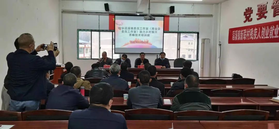 3月18日,位于滔溪镇新联村的周金泉委员工作室内,一场以养蜂技术为主题的培训班正在开展,屏幕前,三十多位有养蜂意向的农户正在构想着发展这一份“甜蜜的事业”。此前,滔溪镇政协委员工作室经过走访调研,发现新联村及附近有不少群众正在养殖蜜蜂,便从乐安镇邀请了养蜂达人刘永祥来进行现场讲解。