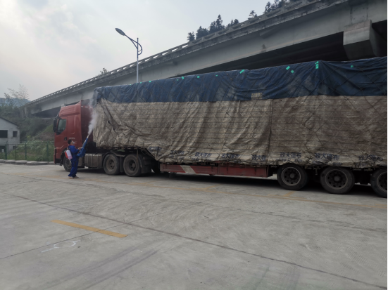 4月12日,镇高速防疫值守人员排查到一台从高风险地区驶来的货车进入冷市镇境内,镇疫情防控指挥部立即与镇非公企业党支部取得联系,请求对货车开展全面消杀工作。在做好个人防护后,逆行而上,对货车驾驶室、门把手、货箱及货物等重点部位进行消杀。