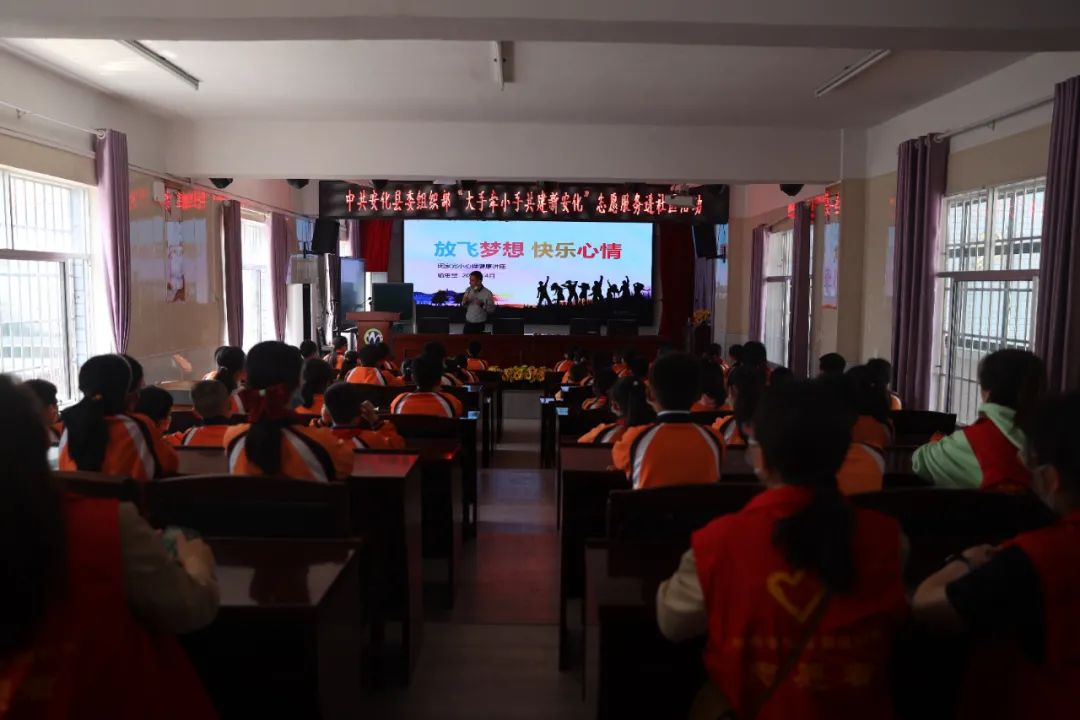 会后,全体党员志愿者来到了城西社区闵家完小,开展“在职党员进社区活动——‘大手牵小手 共建新安化’心理健康辅导和禁毒、疫情防控、反诈宣传”。机关支部邀请心理咨询师喻思堂老师为学生们送上一堂《放飞梦想 快乐心情 》的心理辅导课,课中随机穿插知识问答环节,安排学习用具鼓励学生大胆参与课堂交流。党员志愿者在闵家完小附近通过发放宣传手册的形式开展了禁毒、疫情防控、反诈知识宣传。 |
