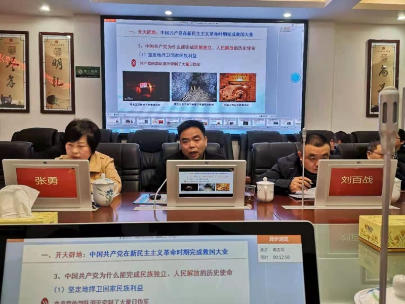 3月24日上午,安化县人大常委会机关支部召开主题党日活动暨党史学习教育动员会,县人大常委会党组书记、主任李太源作动员讲话,县人大常委会党组副书记、副主任姚国良主持会议,县人大常委会副主任肖伟群、张勇出席会议,全体机关干职工参加。 动员会上,张勇宣读了人大机关支部2020年度优秀共产党员表彰通报和党史学习教育实施方案,李太源为10位受表彰的优秀共产党员颁奖并作动员讲话。动员会上,常委会党组理论学习中心组还组织了党史教育集中学习,邀请县委党校宣讲团蒋吉军老师做了题为《中国共产党百年辉煌》的党课辅导,参会党员领导干部围绕“学史明理”主题进行研讨发言。 会议指出,开展党史学习教育,是党中央立足党的百年历史新起点、统筹中华民族伟大复兴战略全局和世界百年未有之大变局、为动员全党全国满怀信心投身全面建设社会主义现代化国家而作出的重大决策,是牢记初心使命、推进中华民族伟大复兴历史伟业的必然要求,是坚定信仰信念、在新时代坚持和发展中国特色社会主义的必然要求,是推进党的自我革命、永葆党的生机活力的必然要求。 会议要求,深入学习党的不懈奋斗史,深刻铭记中国共产党为国家和民族作出的伟大贡献,始终掌握党和国家事业发展历史。深入学习党的为民服务史,深刻感悟中国共产党始终不渝为人民的初心宗旨,始终保持马克思主义政党的鲜明本色。深入学习党的理论创新史,系统掌握中国共产党推进马克思主义中国化形成的重大理论成果,始终用党的创新理论武装头脑、指导实践、推动工作。深入学习党的精神锻造史,传承弘扬中国共产党在长期奋斗中铸就的伟大精神,始终保持艰苦奋斗、开拓进取的昂扬斗志。深入学习党的自我革命史,深刻领会中国共产党不断从胜利走向胜利的宝贵经验,始终站在时代潮流最前列,站在攻坚克难最前沿,站在最广大人民之中。深入学习党的湖南发展史、益阳发展史、安化发展史,系统了解发生在三湘大地特别是安化的重大事件、英雄壮歌、先进事迹,自觉从党的光辉历史中汲取砥砺奋进的精神力量。