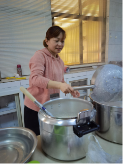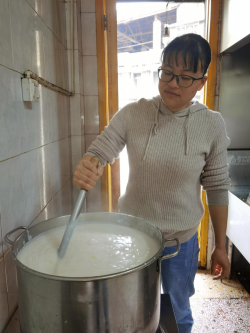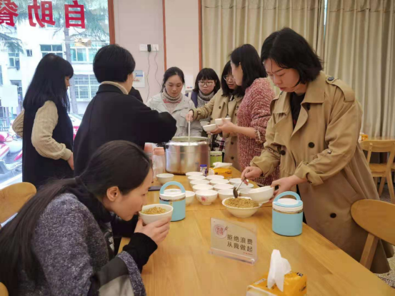 “清明太早,立夏太迟,谷雨前后,其时适中。”谷雨时采摘的茶细嫩清香,味道最佳,故谷雨品新茶,相沿成习。为让大家喝到最嫩最香的谷雨擂茶,一大清早,党员干部王献辉等人就前往山上采摘最新鲜的茶叶,随后在机关食堂分工合作,剥玉米、擂花生、煮热水、搅拌等,忙的热火朝天。不一会儿,机关食堂擂茶飘香,干部职工齐聚共饮,其乐融融。