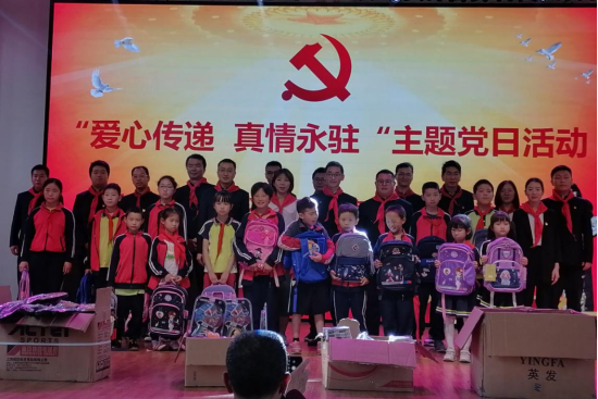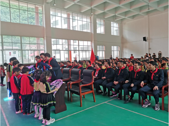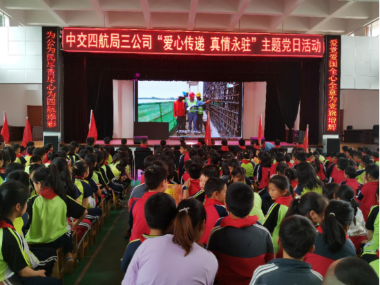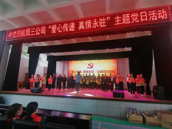 5月27日下午,中交四航局三公司官新高速公路项目党支部的党员同志及青年团干们身着革命服饰、胸佩党徽,与柘溪镇完小的全体师生一同开展“爱心传递 真情永驻”主题党日活动。向学校贫困学生捐赠学习用品,并与其建立互助互学的共建机制。