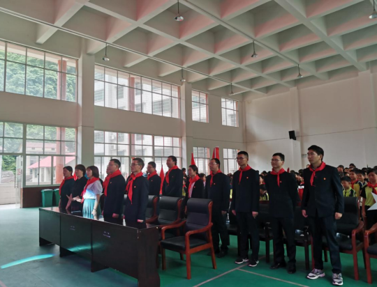 活动当日正值柘溪镇完小举办2021年“红领巾,心向党”少先队扩队仪式。党支部在这个少年儿童盛大的节日里为学生们送上了满心的祝福,并有幸见证了59名一、二年级的新队员光荣地加入了中国少年先锋队,并与其重温入队仪式。在与学校师生献祝福的时候,一并分享了公司的宣传片。通过讲述我们四航的故事,观看我们祖国的大好河山,了解祖国建设的宏伟和科技力量的强大,以及为祖国乃至海外建设默默奉献的工程师们。
