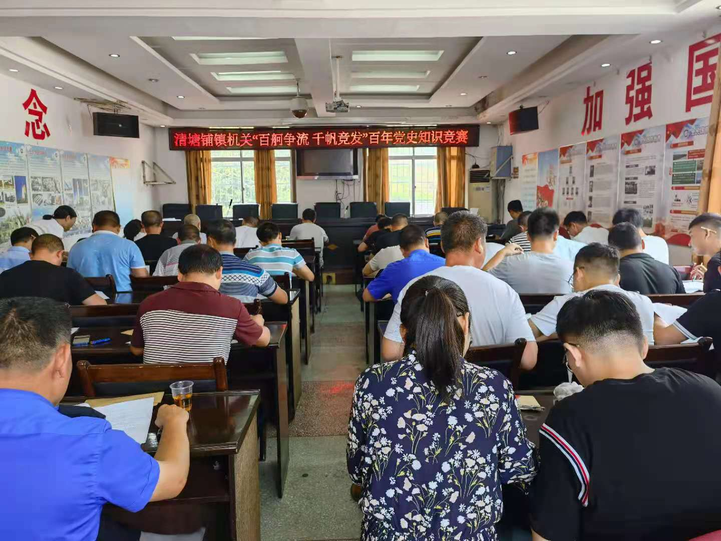 6月17日,清塘铺镇组织全体干职工开展党史知识竞赛,竞赛分为基础知识闭卷考试和抢答赛,各办、中心积极参与。