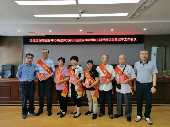 活动中,中心党建分管领导姚繁荣给支部“光荣在党50周年”的8名党员颁发了纪念章以及庆祝建党100周年征文比赛的一、二、三等奖获得者颁发了获奖证书,并代表中心党组向老党员们致以崇高的敬意和衷心的祝贺。“光荣在党50周年”的党员代表龚仲芳同志、征文比赛的一等奖获得者蒋健康同志发表了感言,纷纷表示在这喜迎建党100周年之际感受到党和国家对老党员的切切关怀倍感光荣,将初心不改、一如既往为县域住房保障服务工作贡献更多智慧和力量。