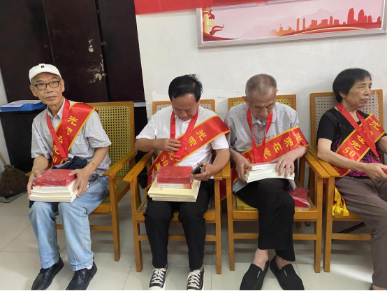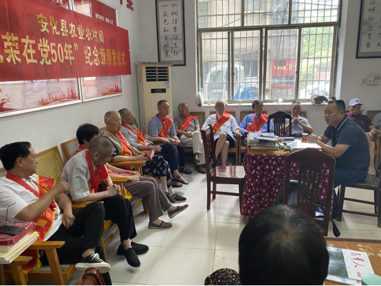 6月30日,县农业农村局举行“光荣在党50年”纪念章颁发仪式。党组书记、局长肖新华带领全体党员重温入党誓词,并向“光荣在党50年”优秀老党员代表颁发纪念章,局党组成员、副局长吴要辉、林敬田参加仪式。 肖新华向获得纪念章的老党员表示热烈的祝贺和崇高的敬意,向老同志们为农业农村事业所做的贡献表示衷心的感谢。他指出,老党员是党执政兴国的重要资源,是推进中国特色社会主义伟大事业的重要力量,他们用自己的实际行动见证了自己的无悔初心,纪念章的背后是无上的光荣,是永远的铭记。同时老同志是鼓舞年轻党员奋斗的灯塔,让广大党员干部始终牢记并践行党的初心使命,传承我们党的光荣作风和优良传统。 肖新华还向全体老同志通报了农业农村工作取得的成绩和特色亮点工作,并恳请老党员提出宝贵意见。老党员积极发言,除了表示对农业农村工作的肯定外,也提出了一些切实有效的建议。仪式最后开展了向离退休党员赠“四本书”活动,引导老党员认真学习党史,进一步坚定理想信念。