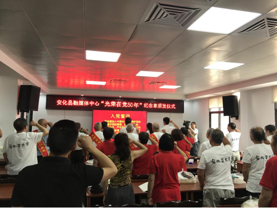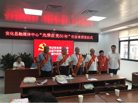 6月30日上午,县融媒体中心开展“光荣在党50年”纪念章颁发仪式,为党龄超过50年且一贯表现良好的老党员颁发“光荣在党50年”纪念章。