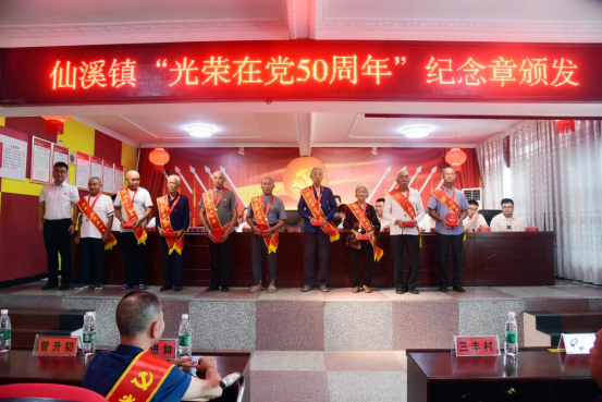 6月24日,仙溪社区、九渡水村举行庆祝建党100周年文艺晚会,并举行“光荣在党50周年”纪念章颁发仪式。