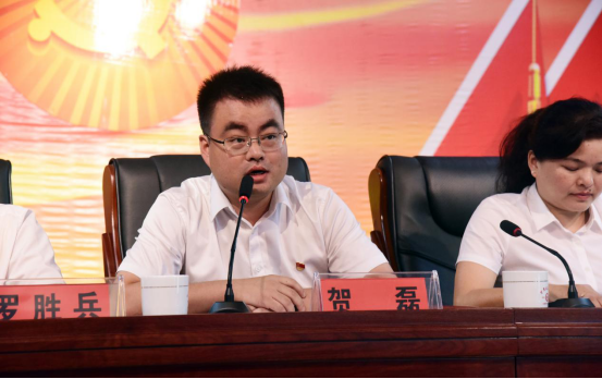 在雄壮激昂的国歌声中,全体党员庄重肃立,拉开了表彰大会的序幕。镇党委书记贺磊带领全体党员重温入党誓词。镇党委副书记罗胜兵宣读表彰文件,向接受勋章的党员同志和受表彰的先进集体表示祝贺。