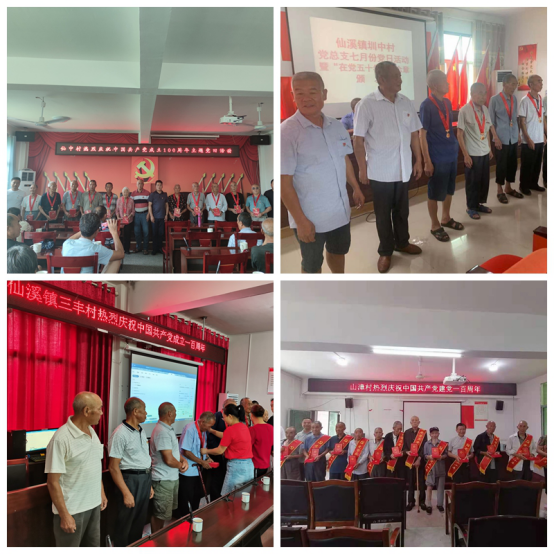 6月30日,仙中村、圳中村、三丰村、山漳村举行庆祝中国共产党成立100周年主题党日活动,并为老党员们颁发纪念章。 |