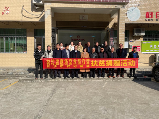 2021年1月19日,长沙市安化商会党支部在江南镇木溪口村进行扶贫捐赠活动。