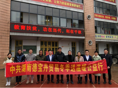 2021年元月21日,湖南德宝丹公司党支部向安化五中捐赠12万元的物资。