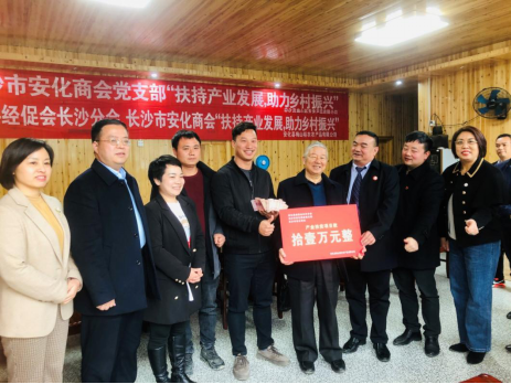 2021年4月2日,长沙市安化商会党支部捐款十万元助力滔溪镇长乐社区产业发展。