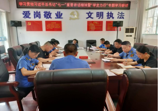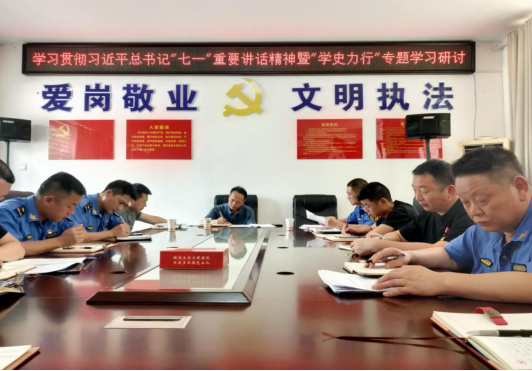 7月7日,安化县城管执法局组织开展党组理论中心组(扩大)集中学习。学习贯彻习近平总书记“七一”重要讲话精神暨“学史力行”专题学习研讨。