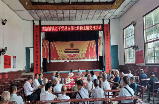 7月9日上午,安化县清塘铺镇老干党总支召开7月份主题党日活动暨换届选举大会,清塘铺镇组织委员与56名老干部参加会议。
