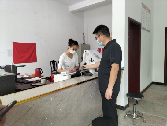 廖小寒一行到古楼乡政务服务中心检查来访人员登记表