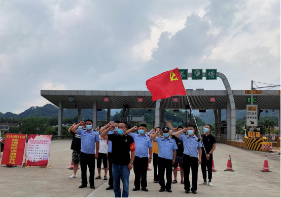 8月9日,长塘镇高速公路疫情防控咨询服务站临时党支部组织全体党员面向党旗,高举右拳,重温入党誓词。