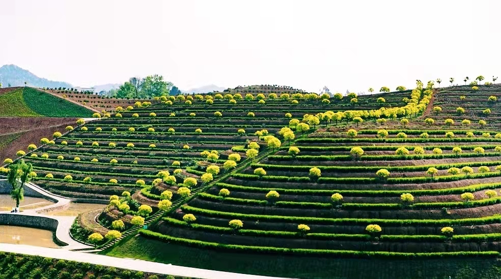 安化茶香花海景区属丘陵地区,喀斯特地貌,由98座小山头组成,占地近2500亩,是以青山绿水为大背景,以茶为基花为底,借助四面环山、溪流婉转的地理特性建设的一家生态文化体验园,俯瞰花海,波光粼粼的湖面,形状各异的山坡,美不胜收,令人心旷神怡。
